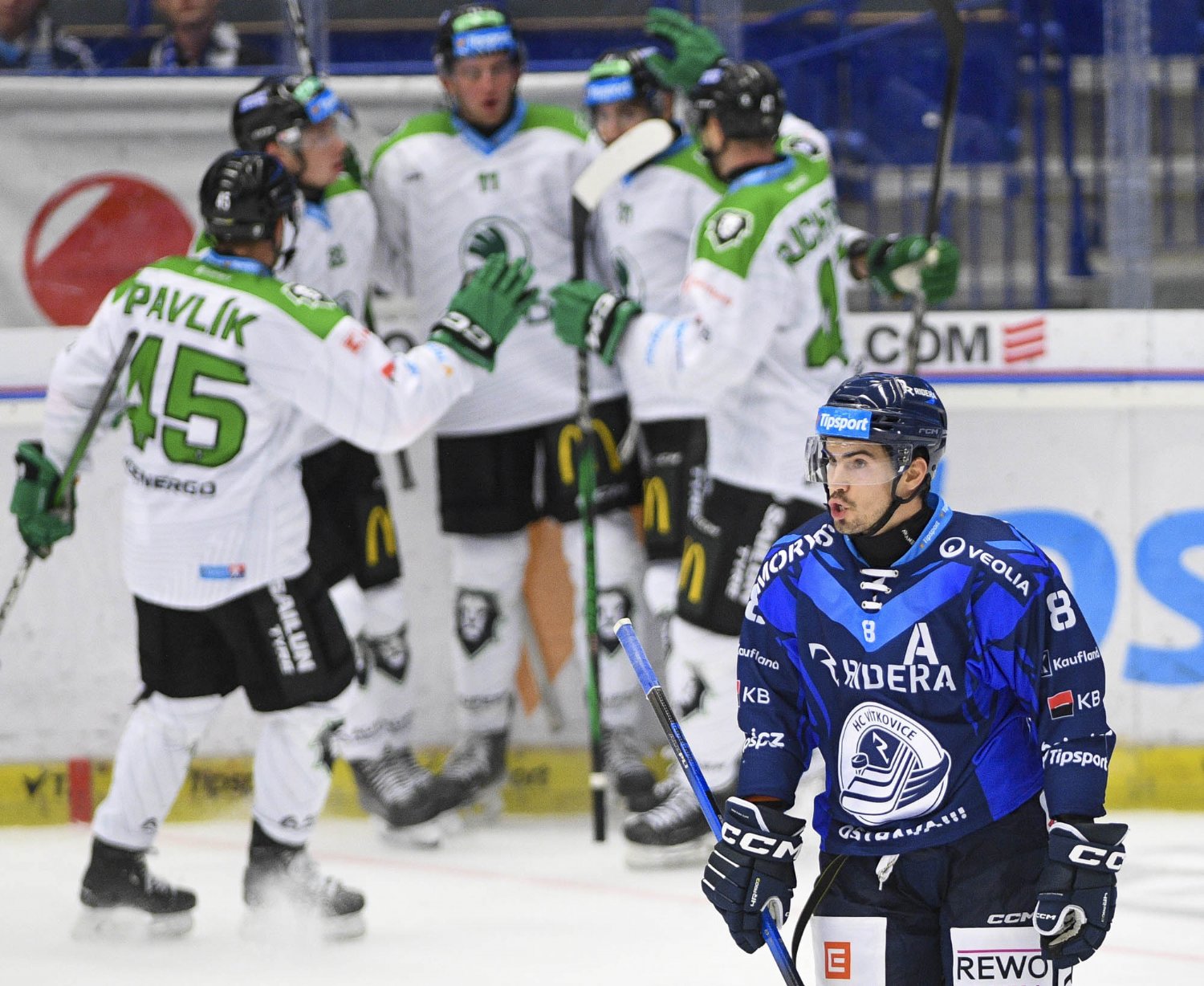 Bylo jasné, že Vítkovice budou ve třetí třetině nepříjemně štípat. A první bolístka na jinak skvělém Furchově výkonu padla po půlminutě hry ve třetí třetině, kdy jej střelou na vzdálenější tyč překonal Yetman. Bílozelení však drželi útočné choutky domácích na uzdě, naopak na 4:1 pro Bruslaře opět navyšoval zaskakující kapitán Tomáš Fořt. Vítkovice v závěru ještě upravili na konečných 2:4 z jejich pohledu, hra bez Klimeše tlak přinesla, gól však nikoli.