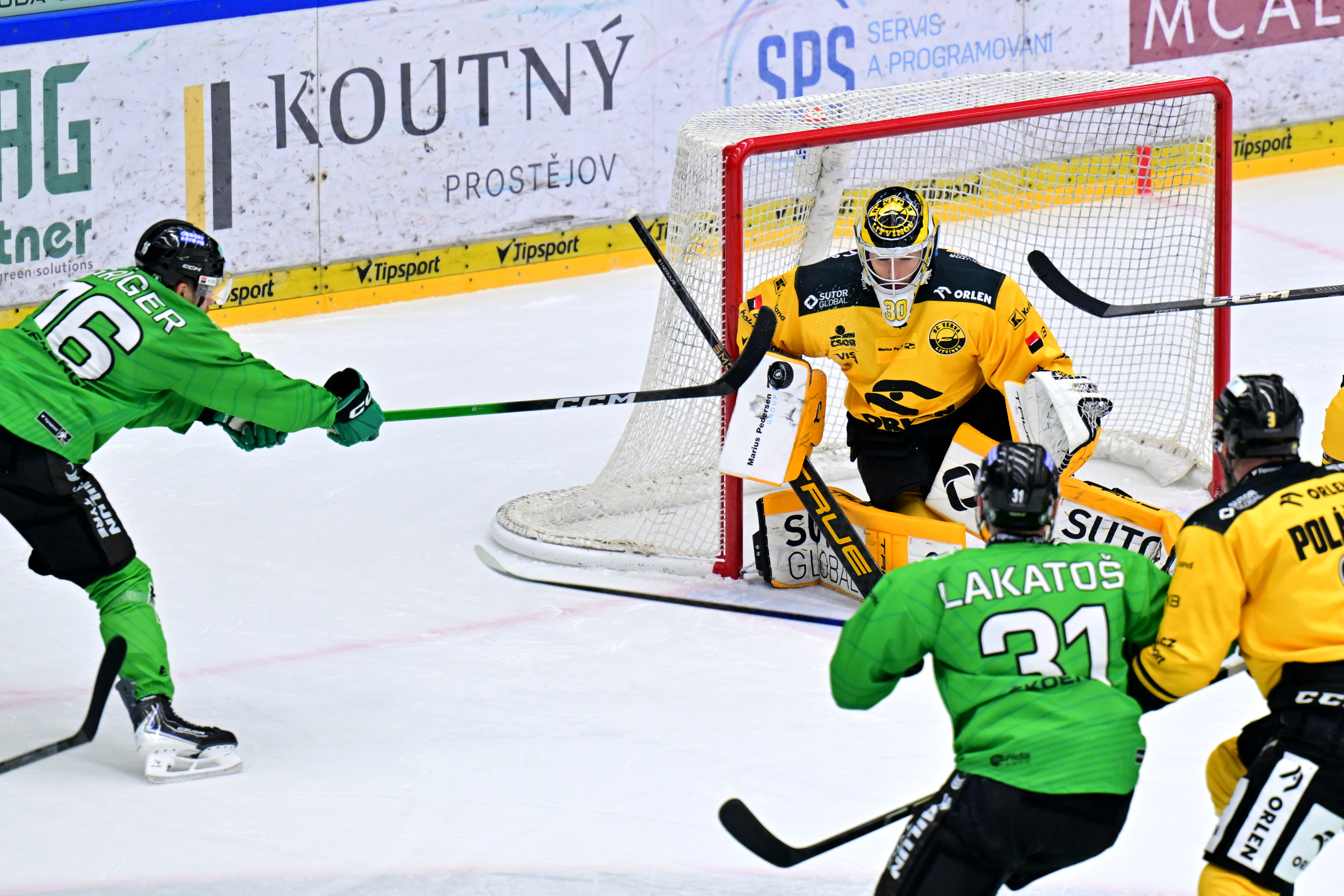 Radost na straně Mladé Boleslavi ale přeci jen propukla. Ve druhé třetině domácí přidali na tempu, z čehož nakonec těžili. Ve 33. minutě totiž David Gríger usměrnil letící kotouč za Čajanova záda a poslal svůj tým do vedení. Srovnat mohl o čtyři minuty později David Kaše, který svým projektilem minul odkrytou část Furchovy brány.
